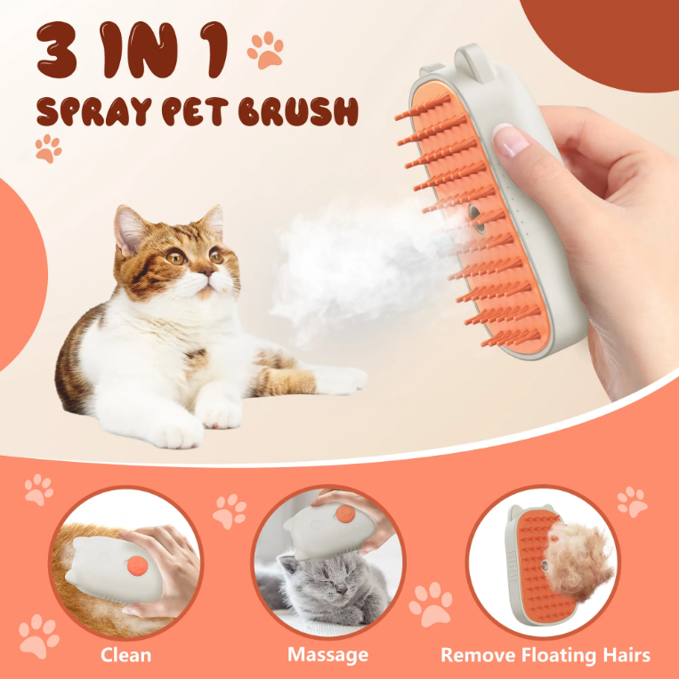 Multifunctional 3 in 1 Rechargeable Pet Hair Massage Spray Comb Rechargeable Electric Spray Steam Cat Hair Brush