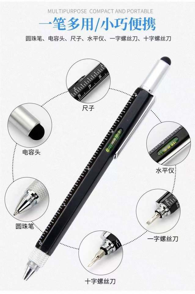 Stylos à bille en métal multifonctionnels 6 en 1 avec logo personnalisé, couleur, stylo d'ingénierie avec échelle en cm/pouces et fonction de niveau à eau