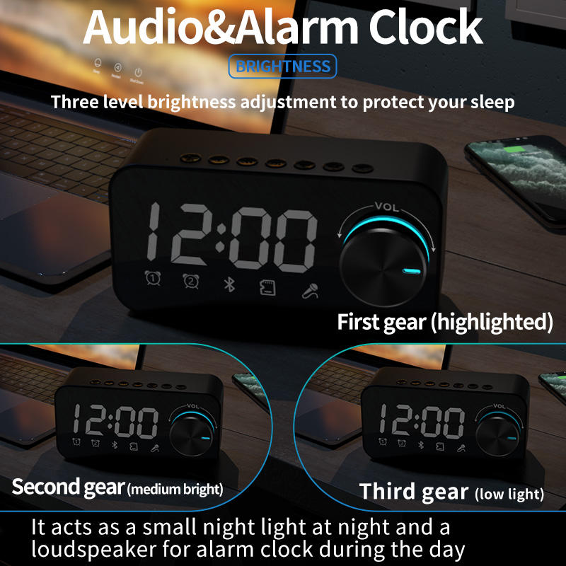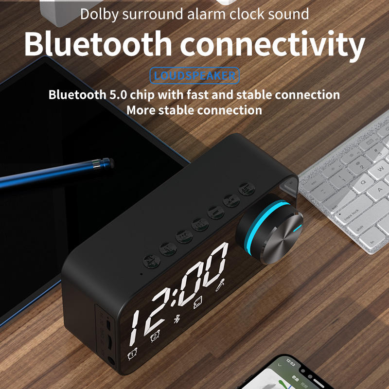 Réveil multifonctionnel Haut-parleur BT sans fil Veilleuse Home Desk Table Speakers With LED Digital Display FM Radio