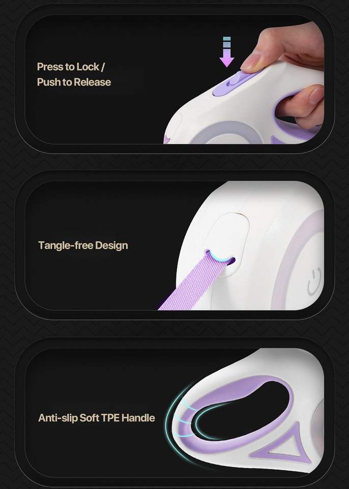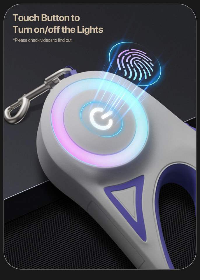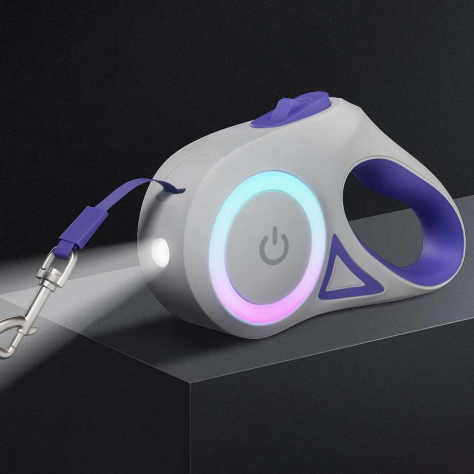 Laisse rétractable automatique multifonctionnelle pour animaux de compagnie avec lumières LED à dégagement rapide et laisse durable pour chien, fourrure et écharpe décorées
