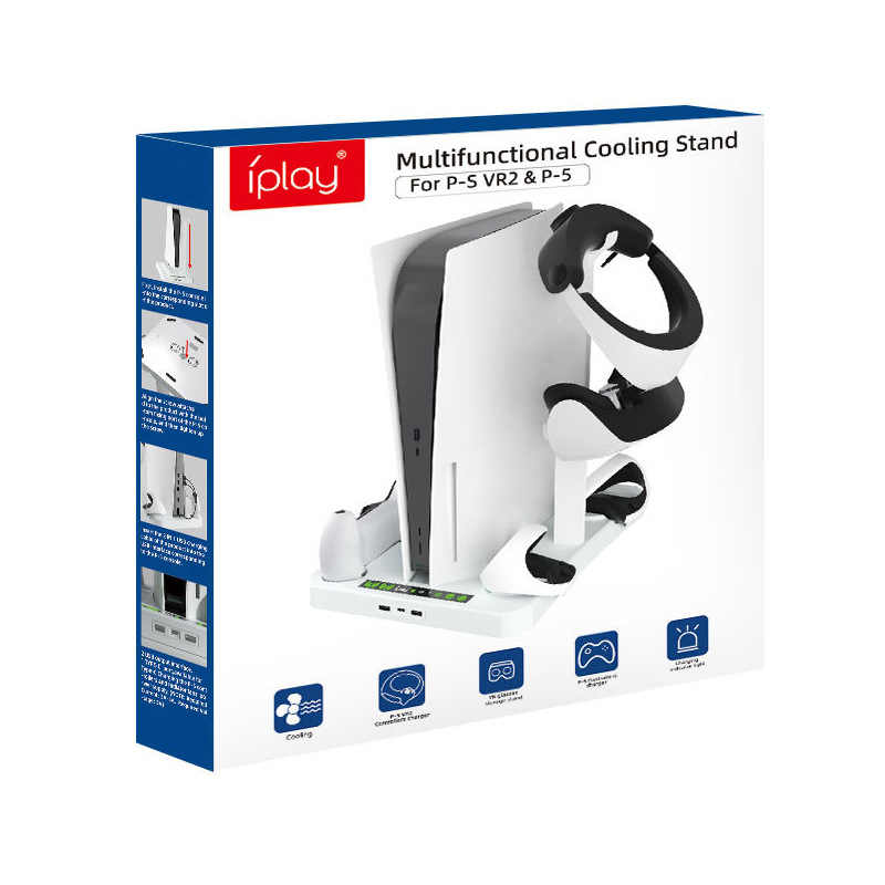 Support de refroidissement multifonctionnel pour Playstation 5 PS5 et PS VR 2 Station de charge de chargeur de contrôleur support de CD