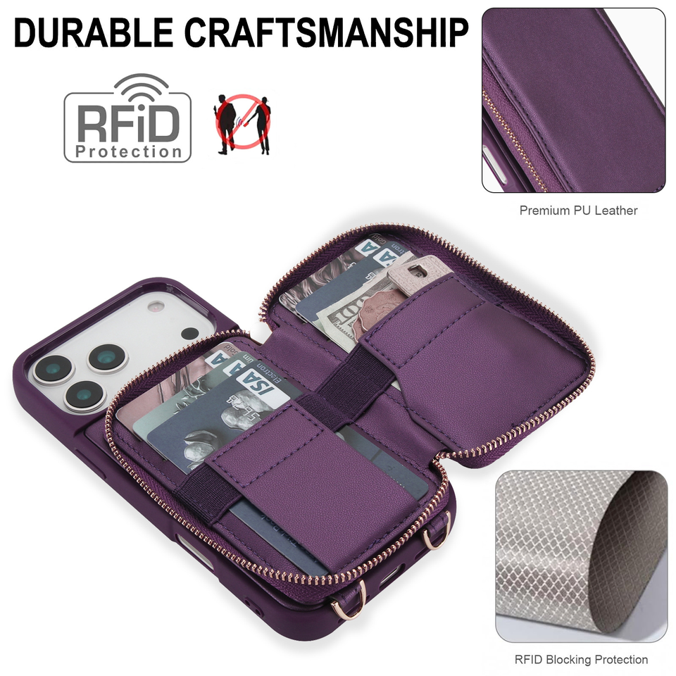 Étui de téléphone multifonctionnel en cuir avec bandoulière, porte-cartes et coque pour iPhone 17 Air Pro Max