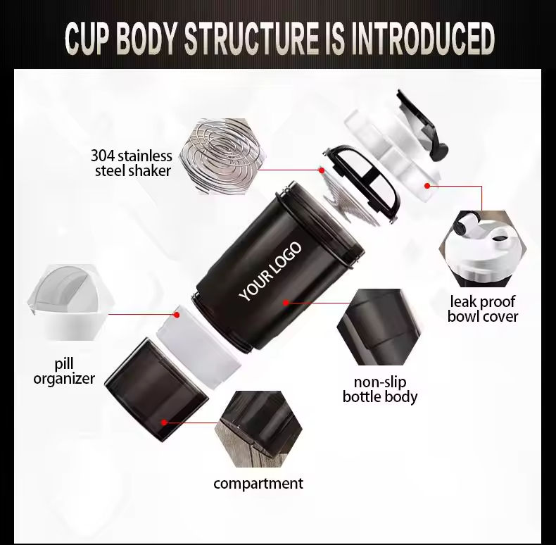 Gobelet mélangeur multifonctionnel personnalisé, écologique, lavable au lave-vaisselle, en plastique, 500 ml/600 ml, pour le sport, la salle de sport, les protéines