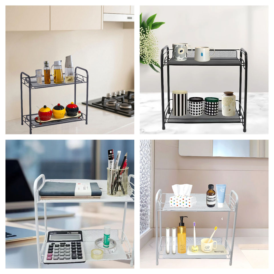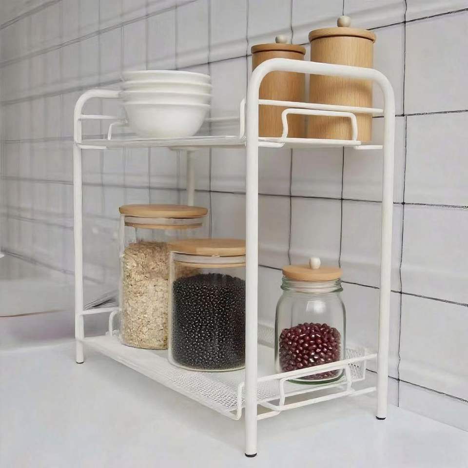 Étagère de rangement multifonctionnelle en métal pour la cuisine Étagère à épices sur pied à 2 niveaux Étagère de rangement pour comptoir
