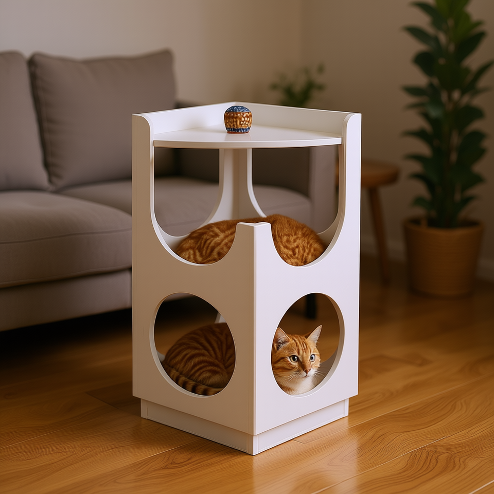 Station pour chat multifonctionnelle à double étage, blanche, moderne, pour petits chats, meuble pour salon et chambre
