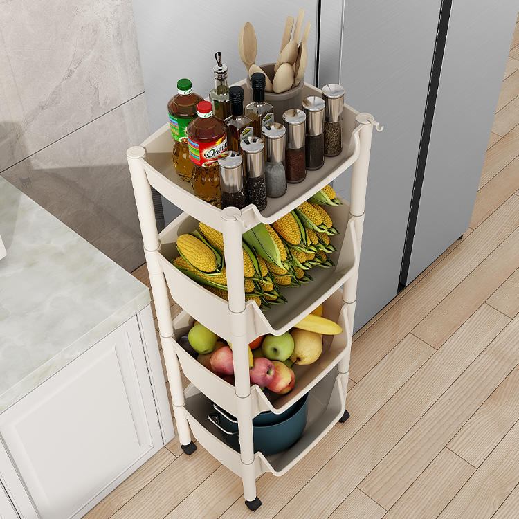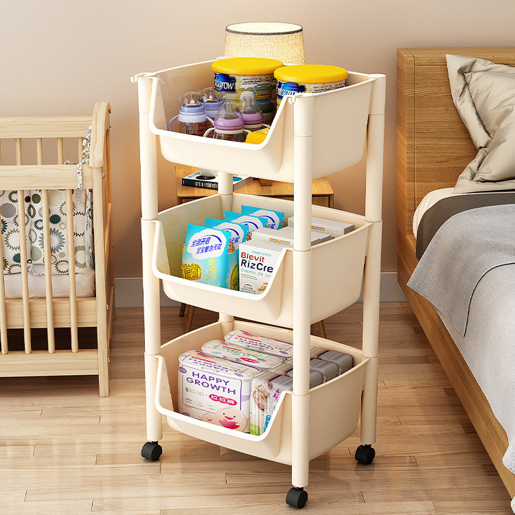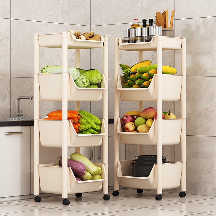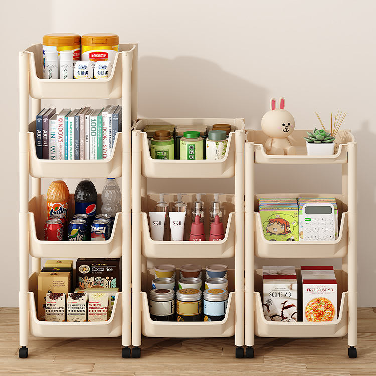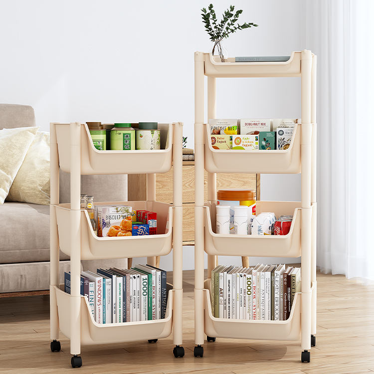 Chariot de rangement multifonctionnel écologique en plastique à 3 niveaux, pliable, mobile, avec roulettes, pour la cuisine