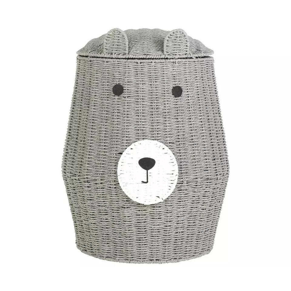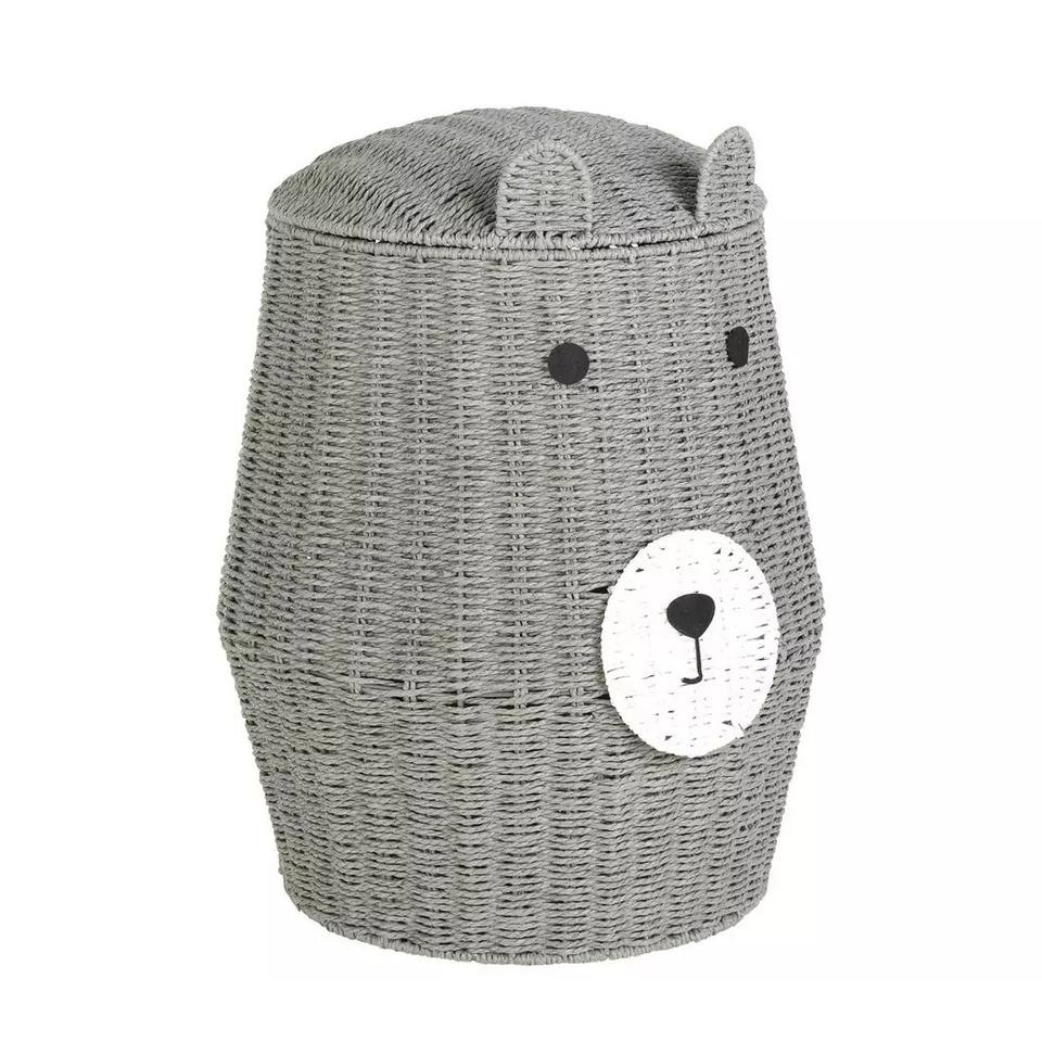 Panier à linge multifonctionnel écologique en forme d'ours gris avec couvercle pour la décoration de la chambre d'enfant Fabriqué au Vietnam