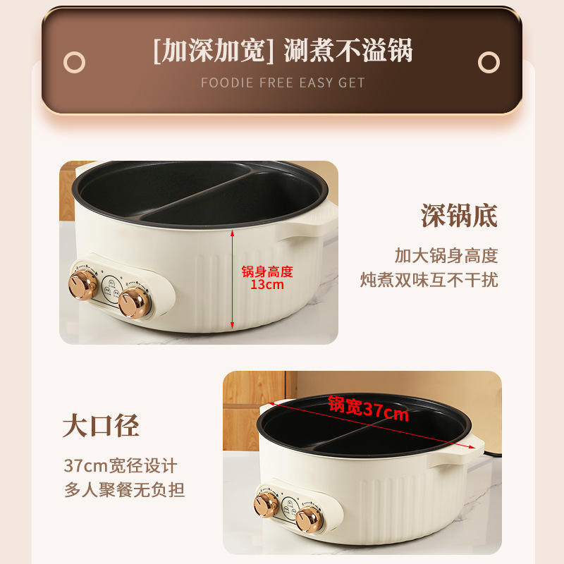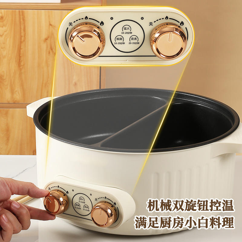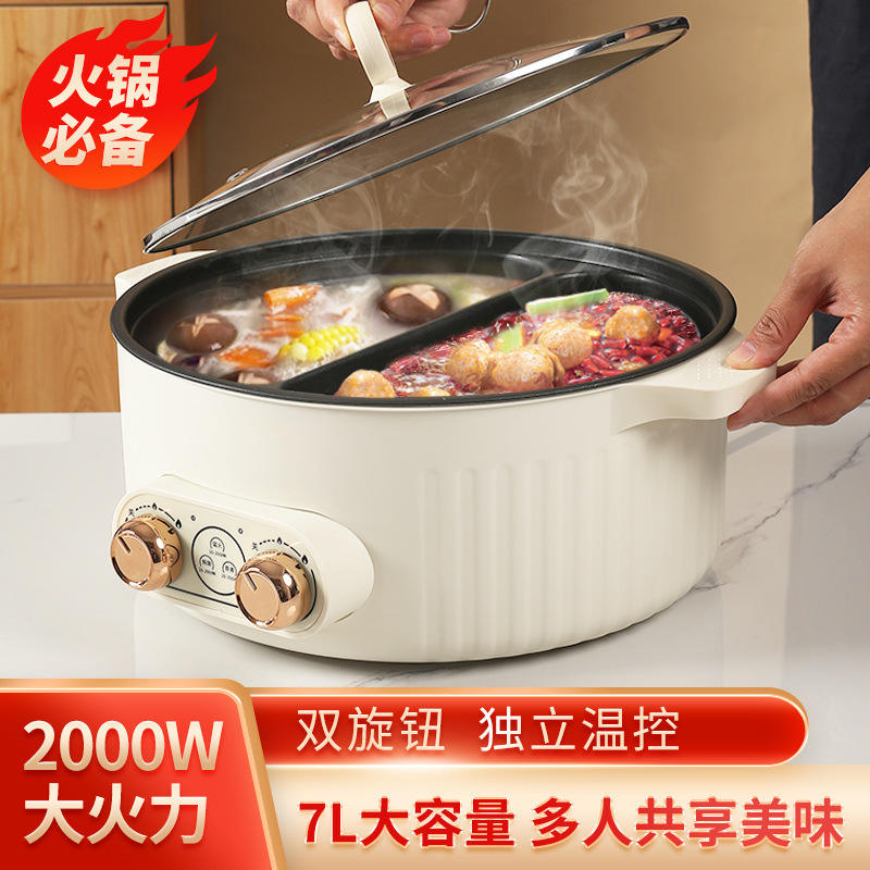 Casserole électrique multifonctionnelle 7L avec double cuve intérieure antiadhésive, double contrôle de température, forme ronde