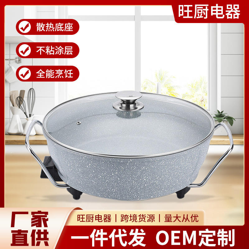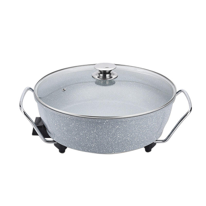Multifunctional Electric Skillet 36Cm Non Stick Maifan Stone Pot With Glass Lid For Cooking And Heating