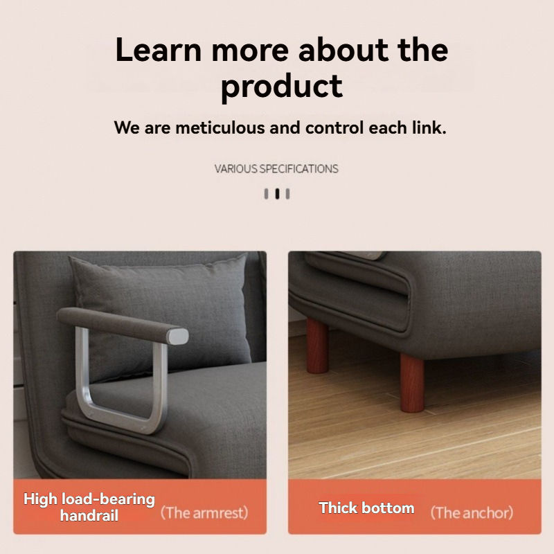 Canapé-lit pliant multifonctionnel en tissu pour salon, canapé confortable avec coussins, gain de place, double usage