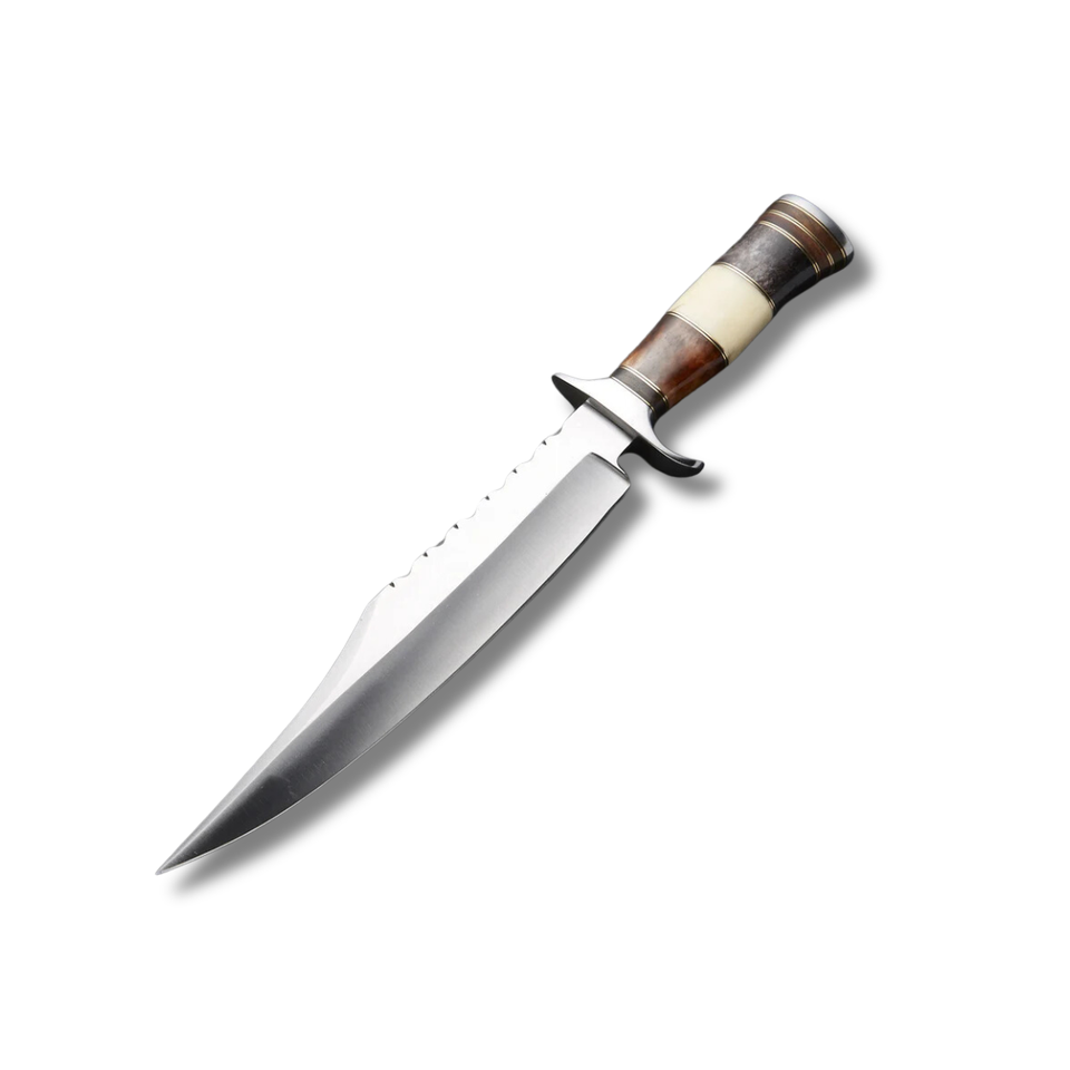 Couteau de chasse multifonctionnel à lame fixe | Lame Bowie en acier inoxydable poli, manche décoratif multi-matériaux