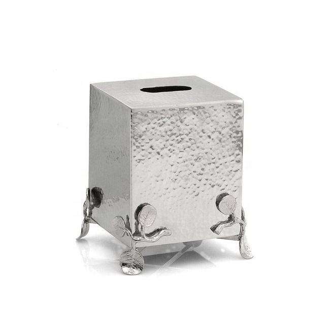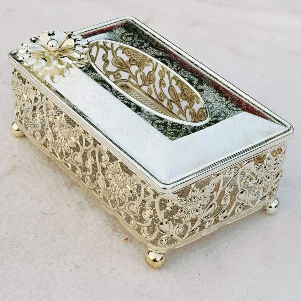 Boîte à mouchoirs multifonctionnelle en métal argenté à découpes florales, organisateur écologique de style nordique pour une décoration coordonnée, prix de gros