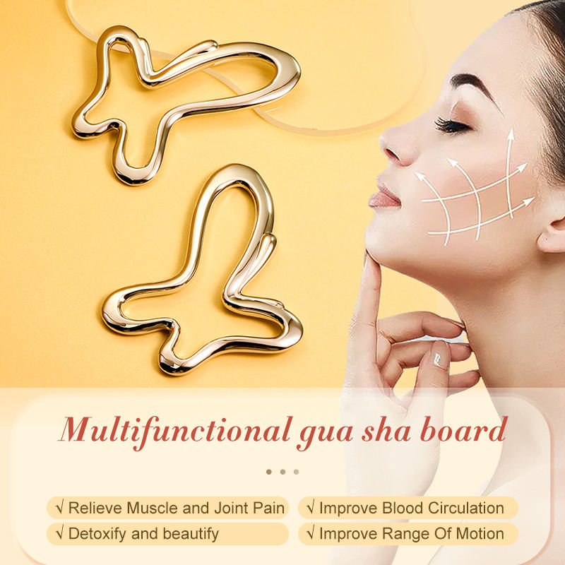 Outil de massage multifonctionnel en forme de papillon en métal creux Gua Sha pour le visage et le corps