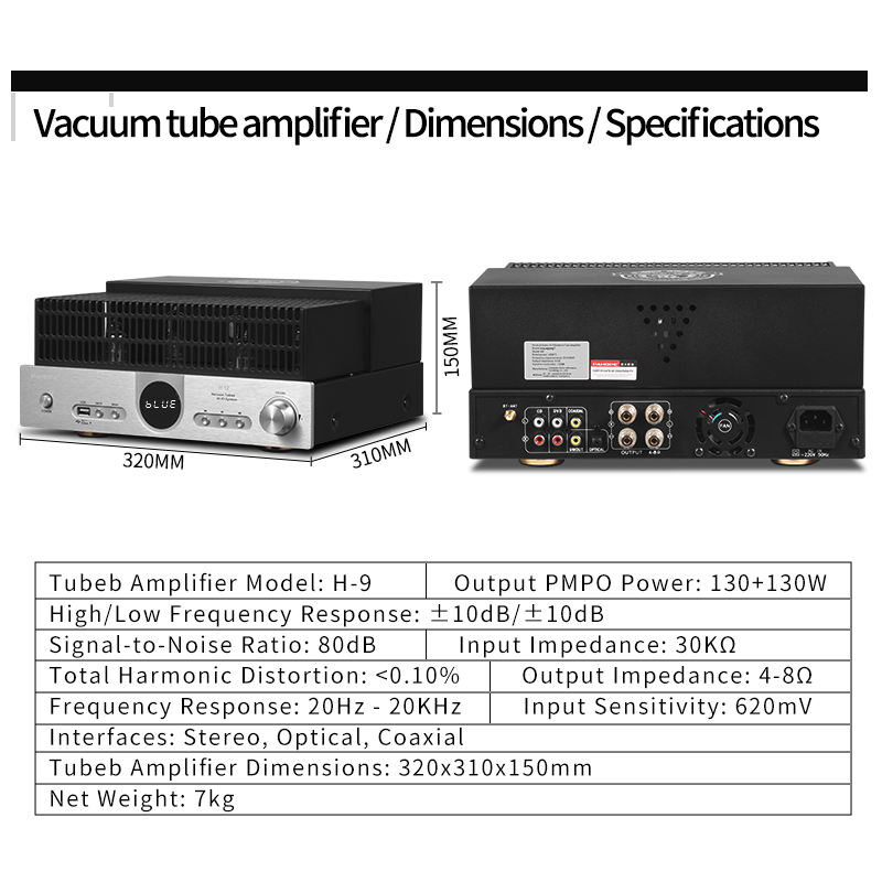 Amplificateur à Tube à Vide Triode Haute Puissance TB Multifonctionnel HIFI Audio Domestique avec Système Audio Coaxial à Fibre Optique