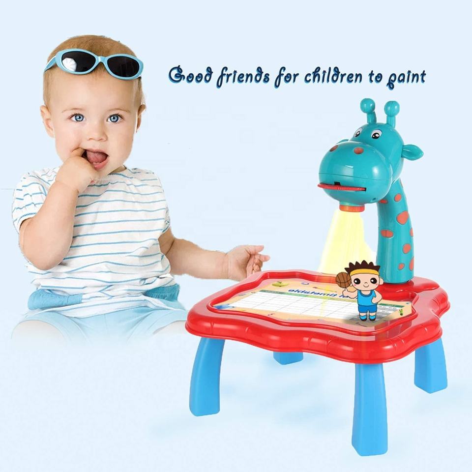 Bureau de dessin multifonctionnel pour enfants avec projecteur girafe, jouets éducatifs avec table de peinture à projection détachable