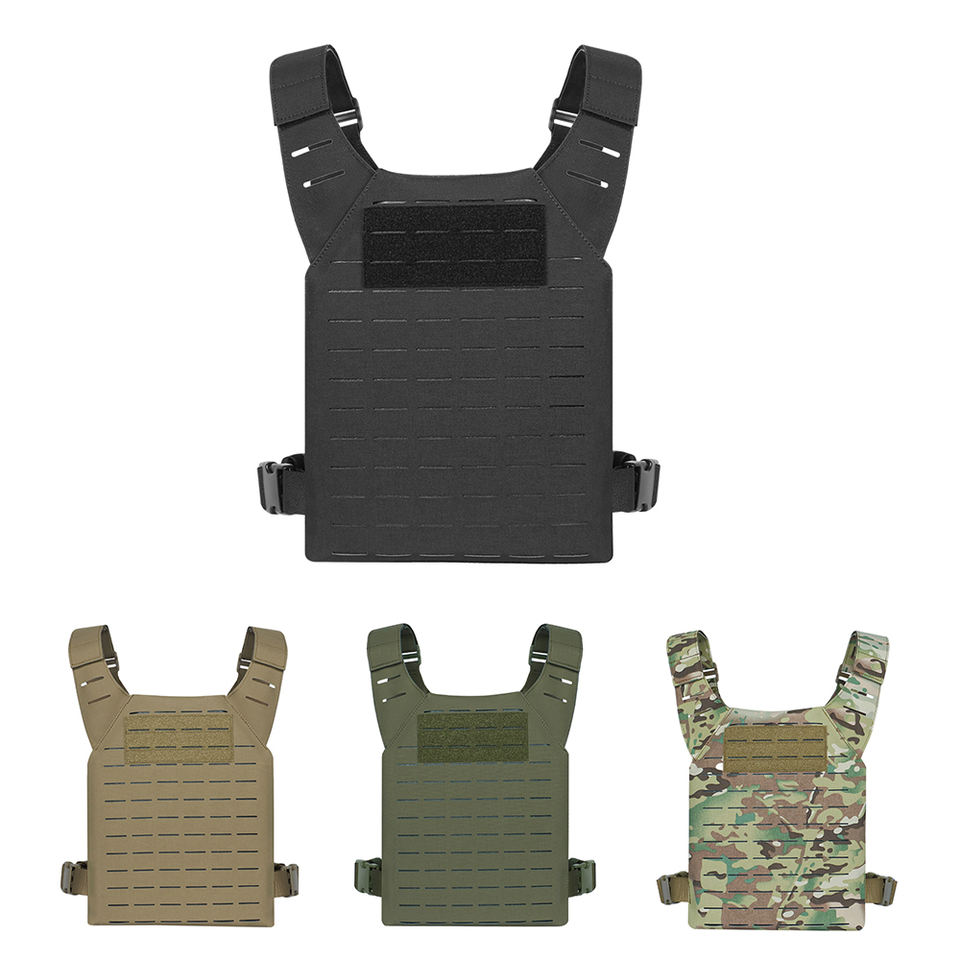 Gilet tactique multifonctionnel MOLLE CS pour exercices et combat, avec porte-plaques à dégagement rapide et découpe laser