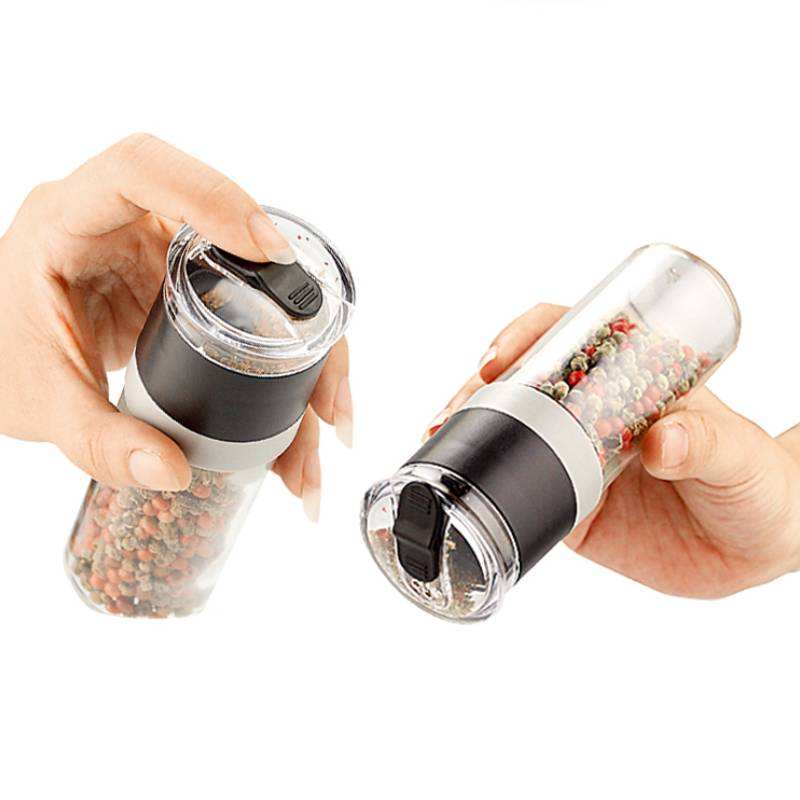Ensemble de moulins à épices manuels multifonctionnels en verre, moulin à sel et à poivre avec mécanisme en céramique et couvercle doseur pour la cuisine