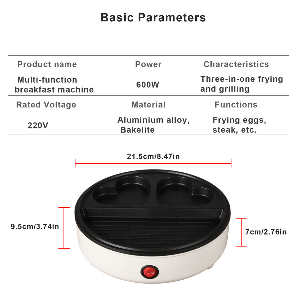 Mini poêle électrique multifonctionnelle Friteuse à œufs et steaks antiadhésive Machine à sandwich petit-déjeuner Cuisinière à induction compatible avec le métal