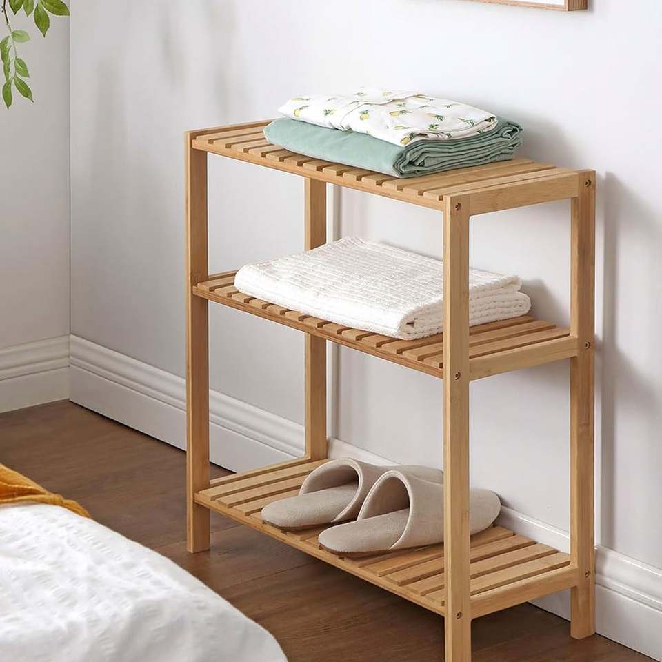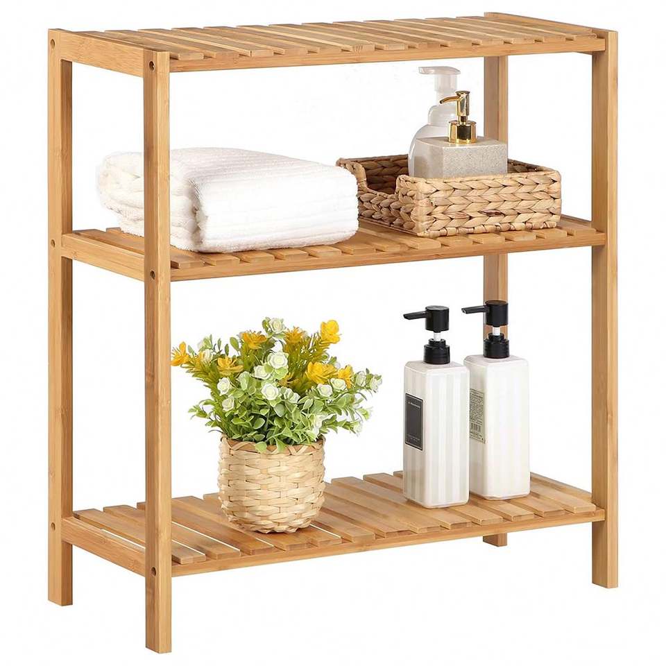 Multifunctional Modern 3-Tier Bamboo Storage Shelf Standing Rack for Living Room Kitchen or Bathroom Towel Storage