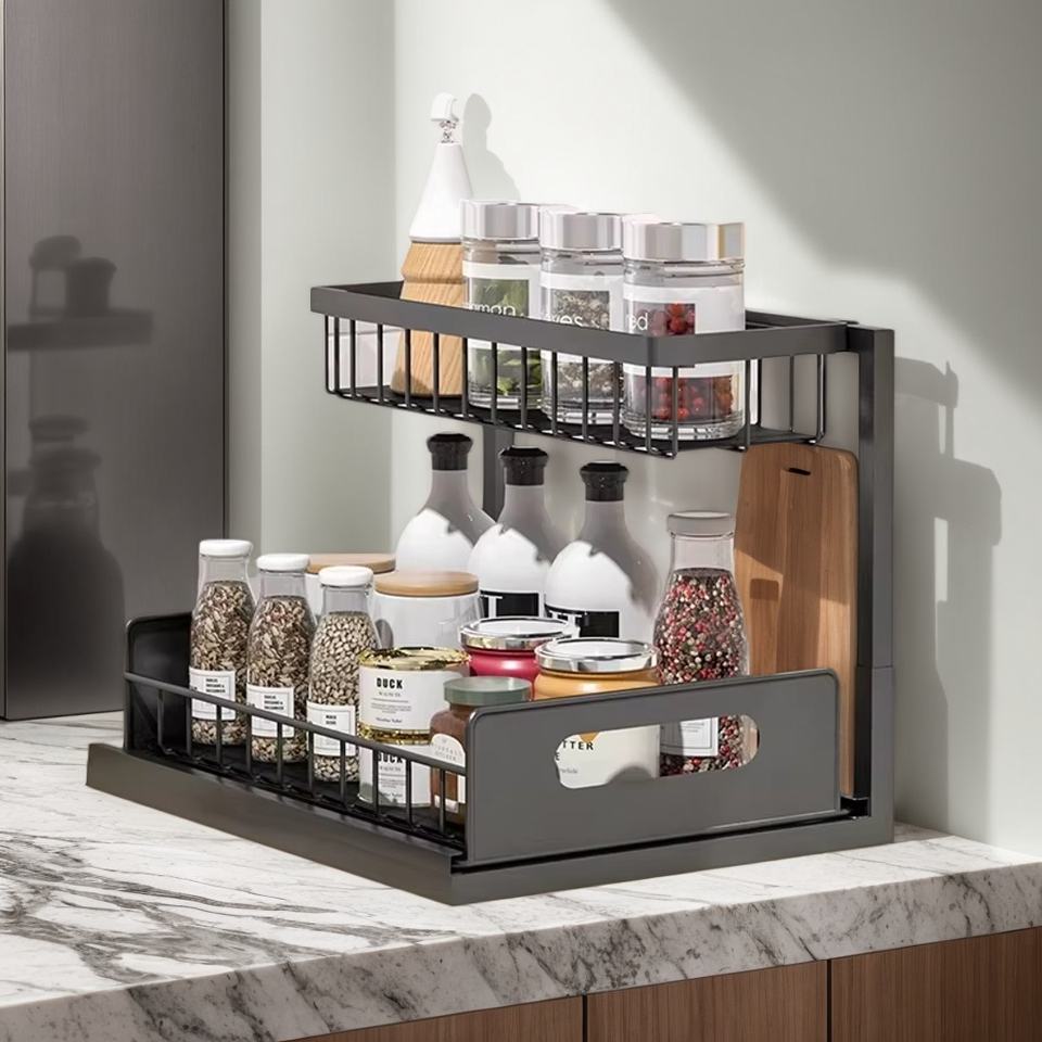 Étagère à épices multifonctionnelle moderne à double niveau en fer forgé, organisateur sous l'évier