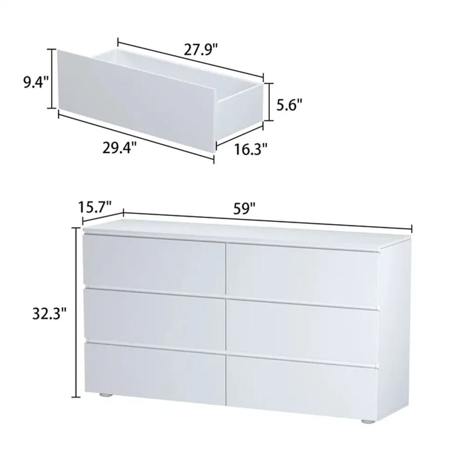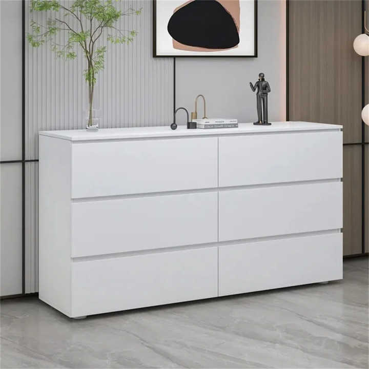 Meuble de salon moderne multifonctionnel, armoire de rangement à 6 tiroirs, table de chevet pour chambre à coucher, commode en bois blanc