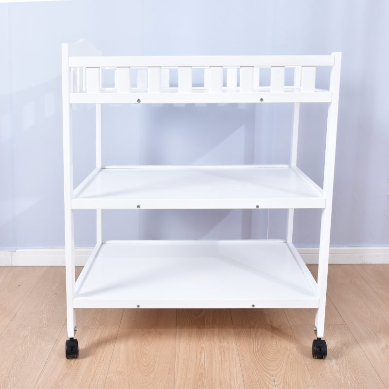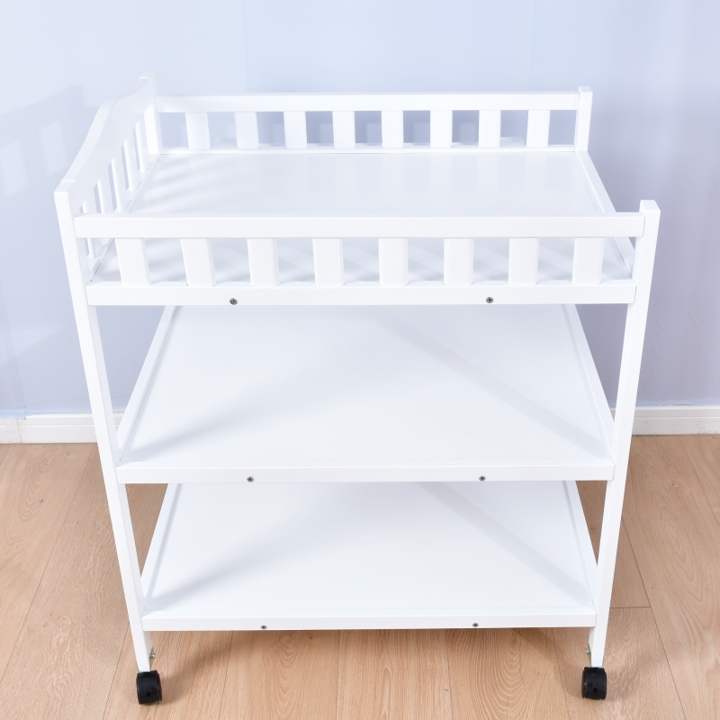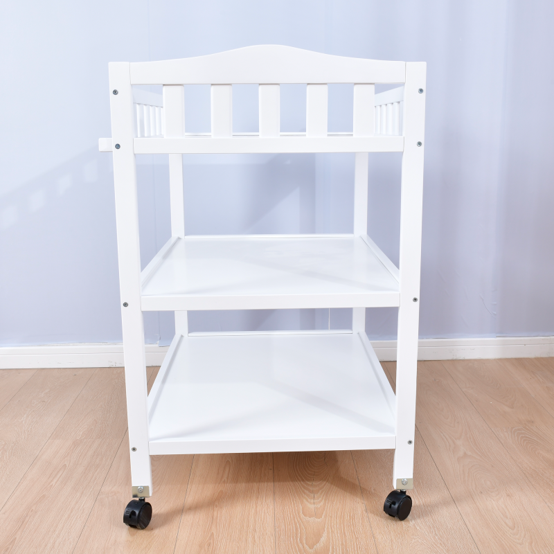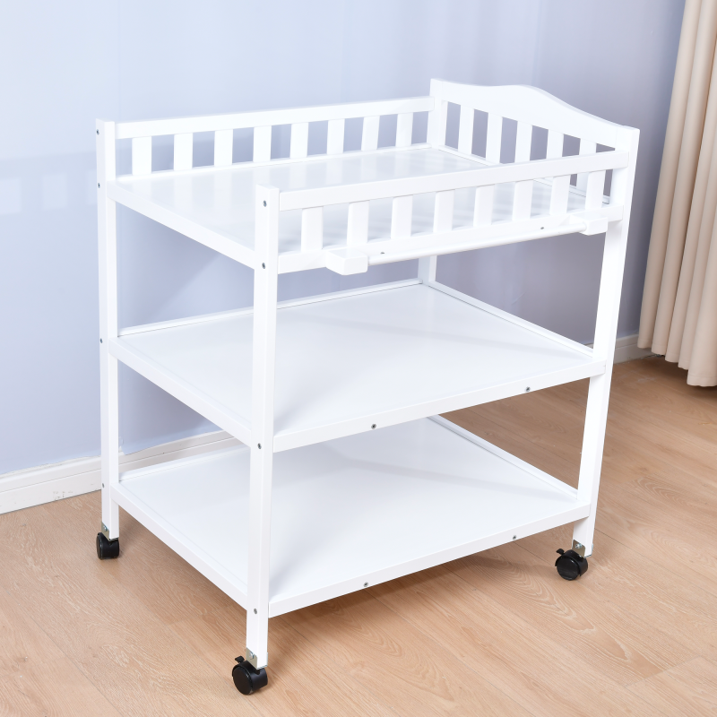 Table à langer multifonctionnelle moderne en bois massif blanc avec étagère de rangement pour la crèche, les nouveau-nés et les enfants