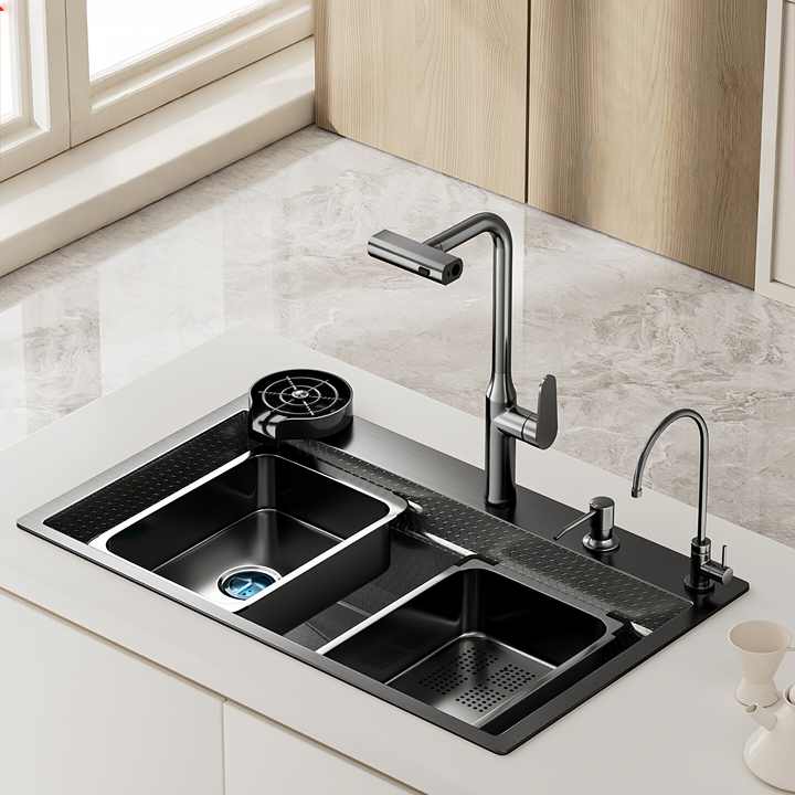 Évier de cuisine multifonctionnel en acier inoxydable 304 nano-épaissi à grande cuve unique pour la vaisselle domestique
