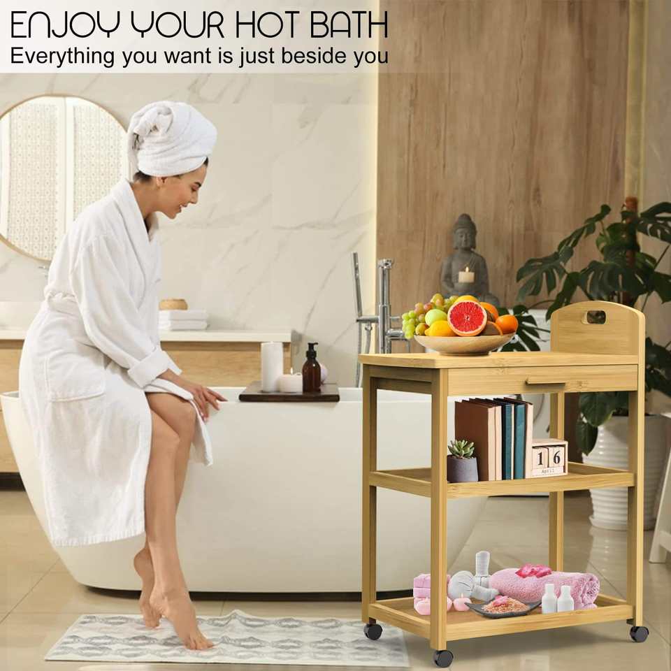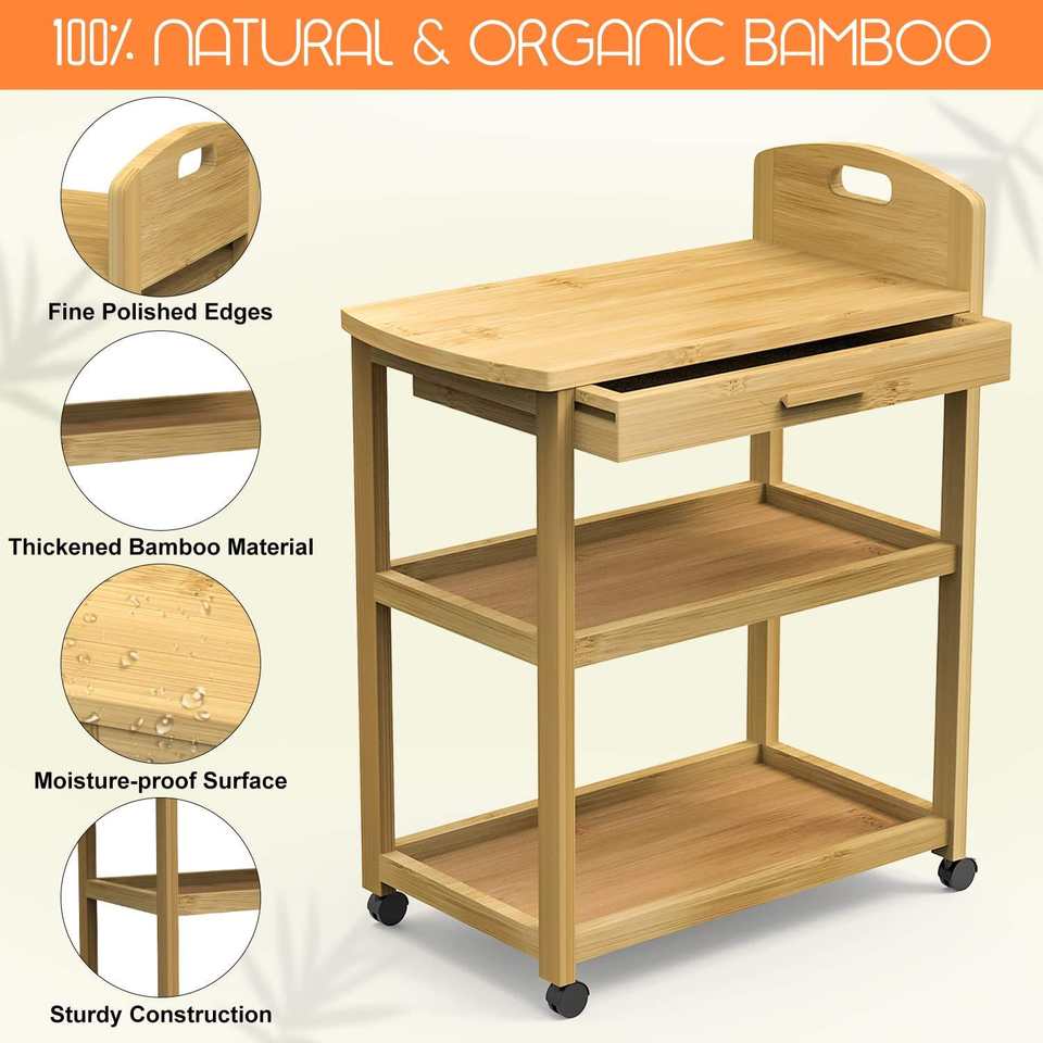Étagère ouverte multifonctionnelle pour chariots de préparation alimentaire en magasin, chariot de rangement en bambou