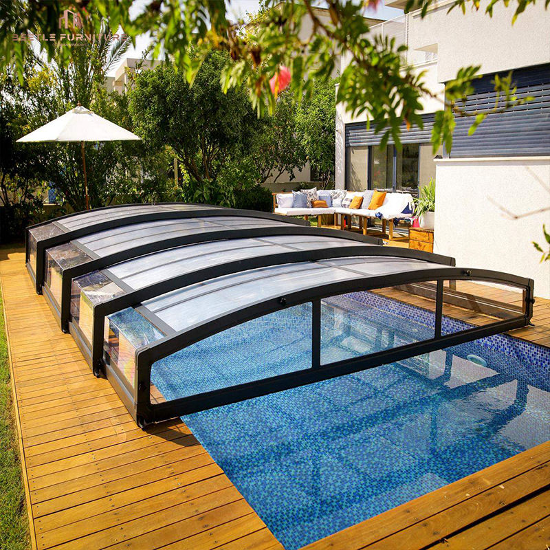 Enceintes de piscine multifonctionnelles pour piscines extérieures Enceinte de piscine pliante Couverture de piscine en polycarbonate rétractable