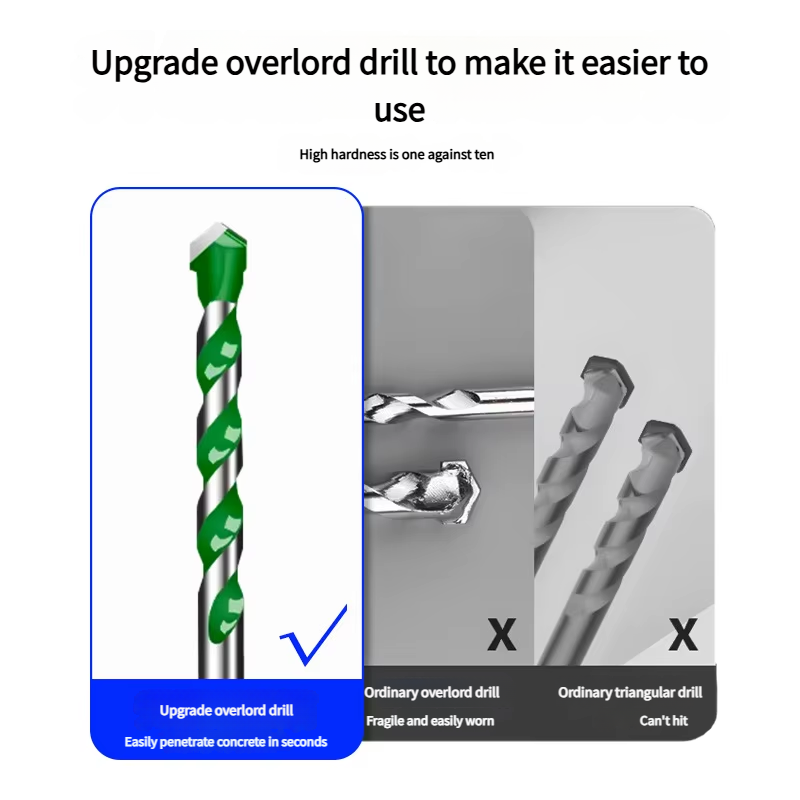 Foret Overlord multifonctionnel Grande remise 10mm carbure tranchant pour béton ciment marbre revêtement 3mm forage de trous