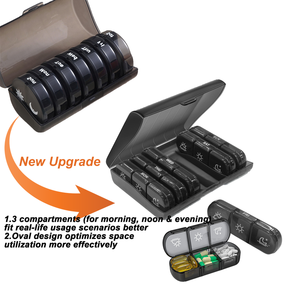 Organisateur de pilules hebdomadaire multifonctionnel en plastique PP, compartiments quotidiens, logo couleur personnalisé, service de commande en gros OEM ODM Springseaon