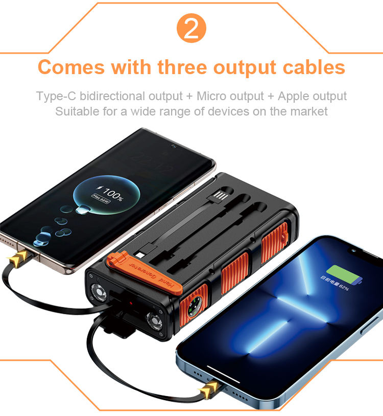 Manivelle solaire multifonctionnelle portable de 30000Mah à 40000Mah avec boussole intégrée Courant de sortie 1A Voyage en plein air