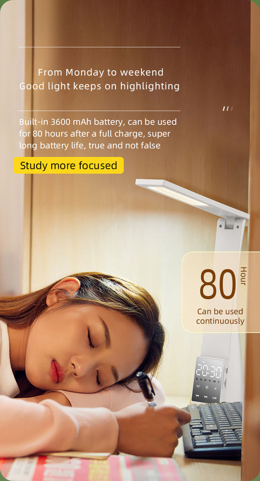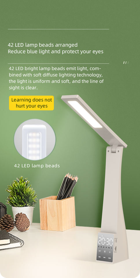 Lampe de bureau multifonctionnelle avec haut-parleur, réveil, lampe de table LED rechargeable T1 avec USB