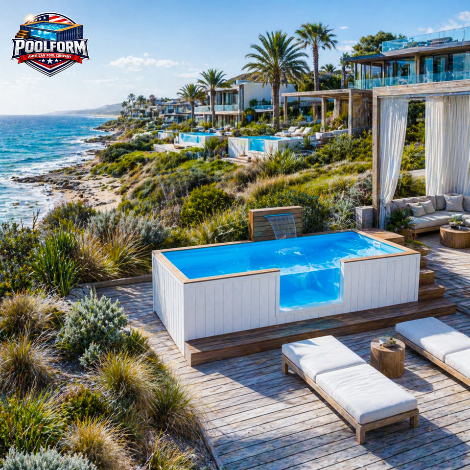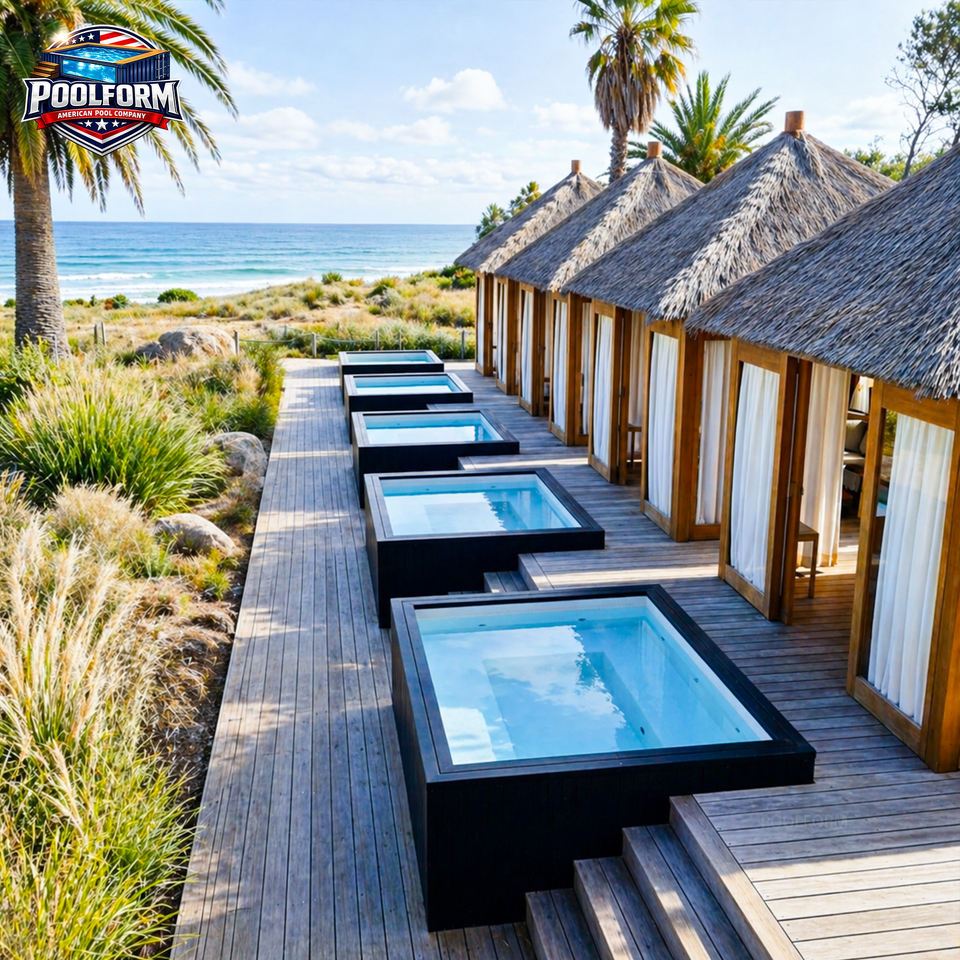 Hôtel de luxe avec piscine hors sol et fenêtre en acrylique, piscine préfabriquée en fibre de verre