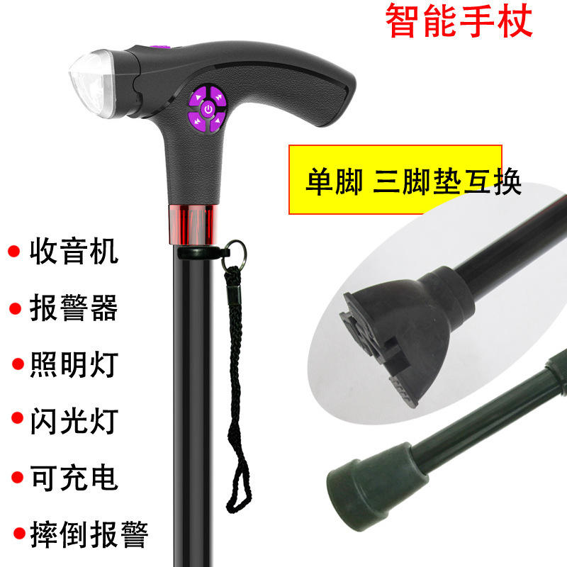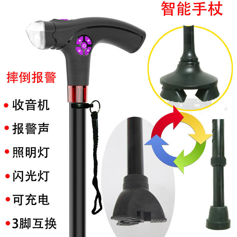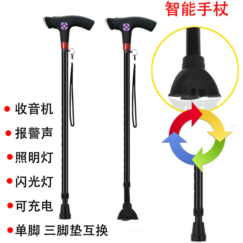 Canne intelligente multifonctionnelle pour personnes âgées avec éclairage, radio et alarme, manche en alliage d'aluminium, embout en caoutchouc, bâton de marche