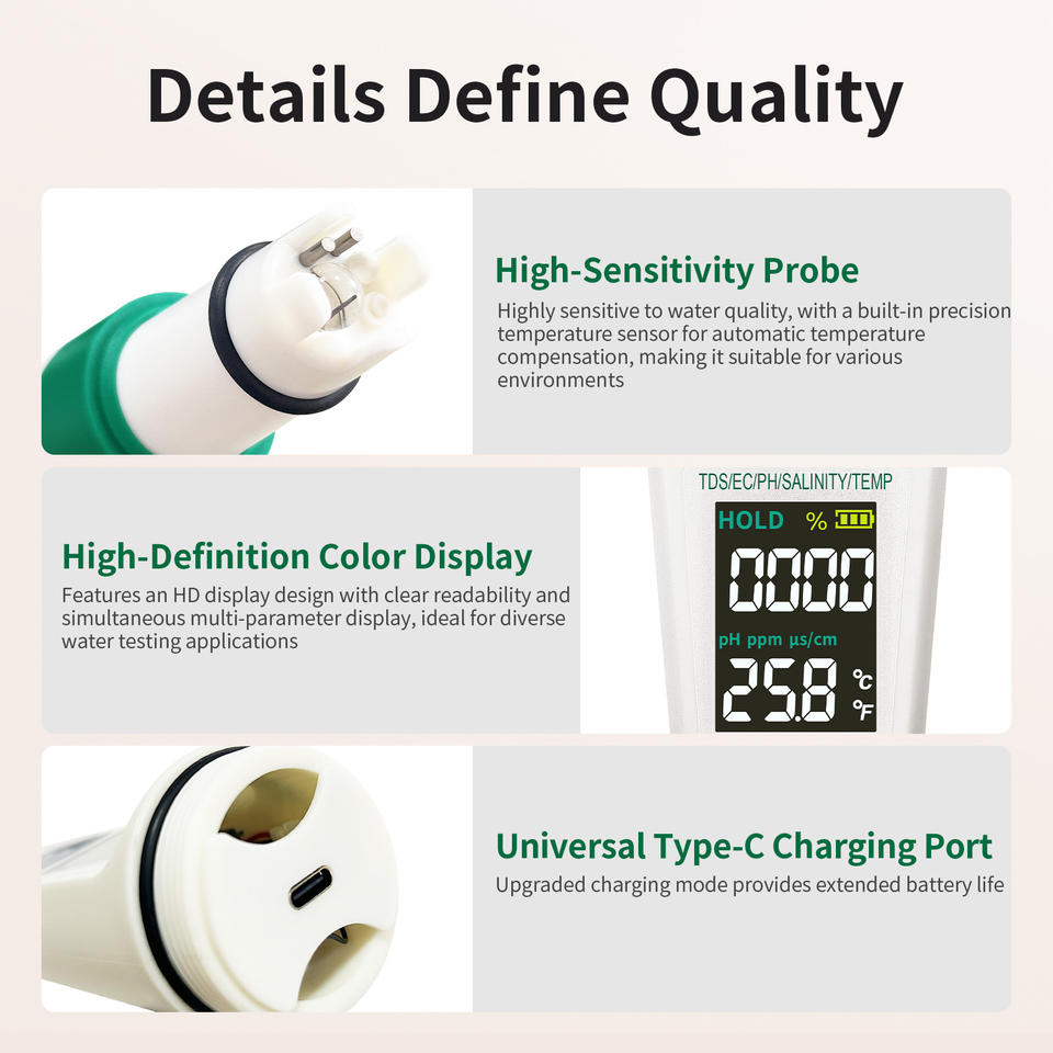 Nom du produit:Testeurs d'eau multifonctionnels 5-en-1