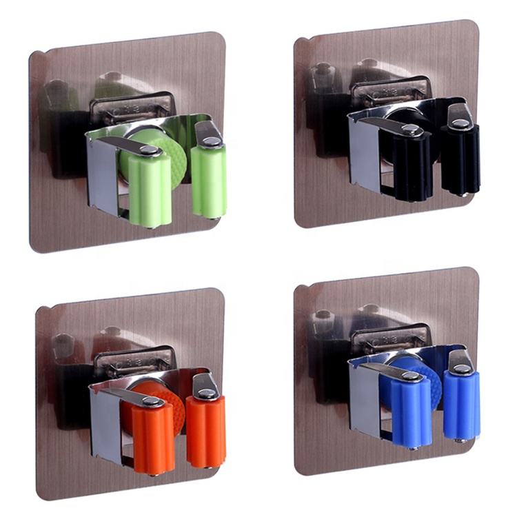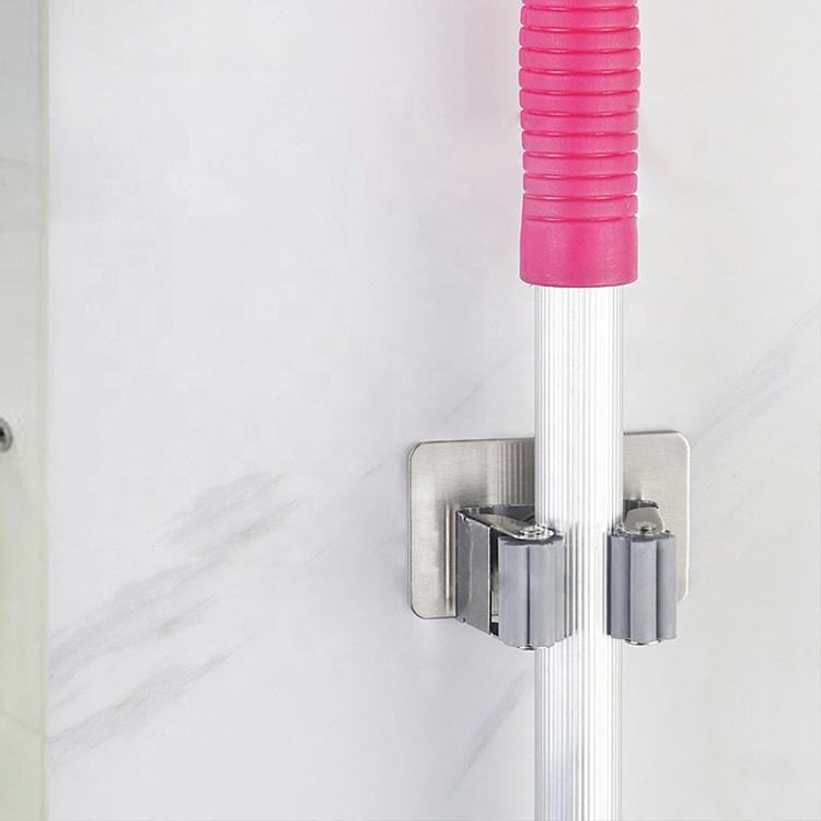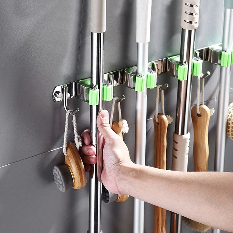 Crochet mural multifonctionnel en acier inoxydable, support d'organisation sans perçage, porte-balai, porte-serpillière, support de rangement, crochet mural