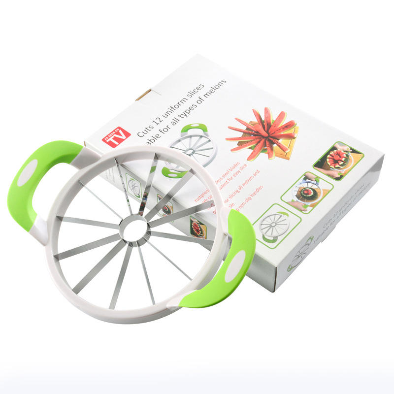 Coupeur de pastèque multifonctionnel en acier inoxydable Coupeur de melon diviseur rond à main Coupeur de pastèque extra grande taille