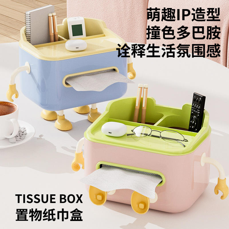 Boîte à mouchoirs multifonctionnelle avec organisateur de rangement pour chambre à coucher, salon, table basse, design de dessin animé