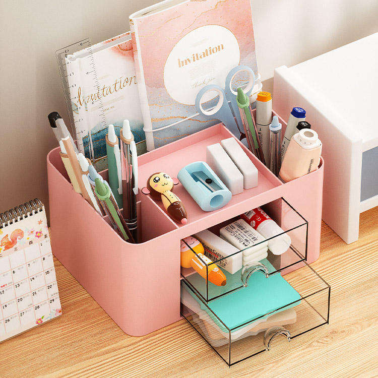 Organisateur de bureau multifonctionnel en plastique transparent mignon pour enfants, filles, école, avec tiroir