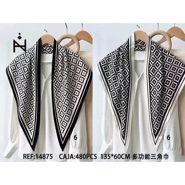 Écharpe triangulaire multifonctionnelle 135x60cm, motif noir et blanc, accessoire de mode pour femmes