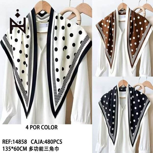 Écharpe triangulaire multifonctionnelle 135x60cm, motif à pois, accessoire de mode pour femmes