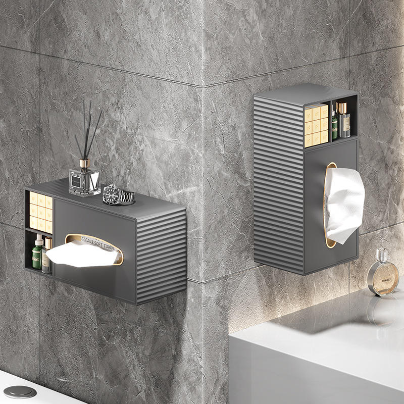 Boîte à mouchoirs murale multifonctionnelle en plastique noir, étagère de salle de bain avec rangement pour usage domestique