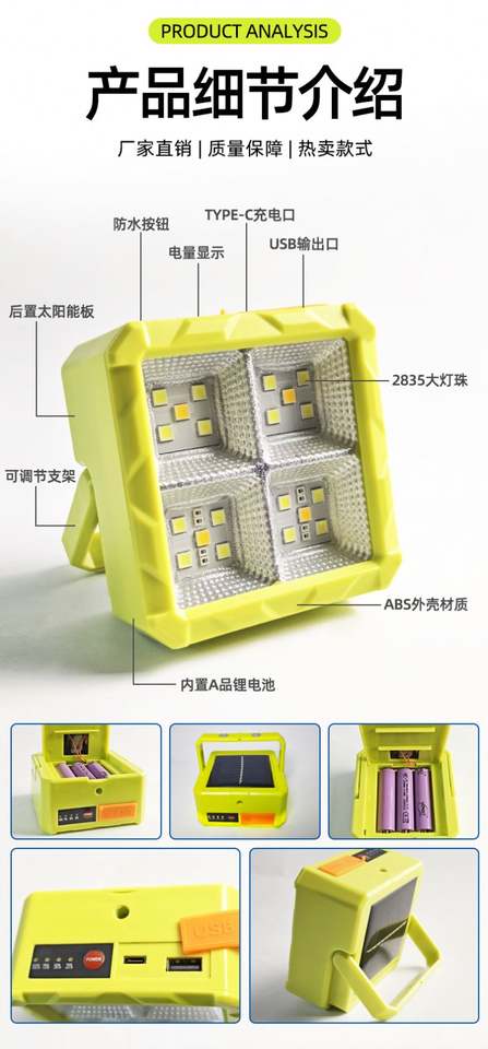 Lampes solaires LED multifonctionnelles étanches pour jardin, éclairage d'urgence pour voiture, alimentation électrique, indice de protection IP65