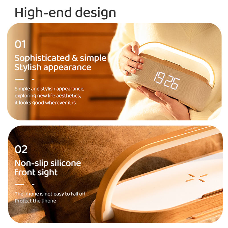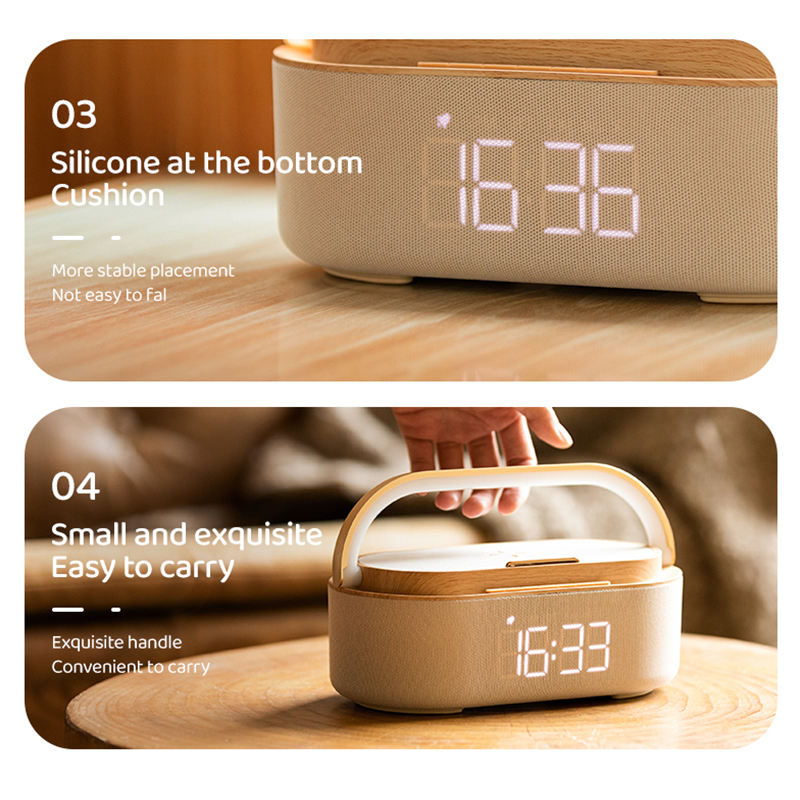 Chargeur sans fil multifonctionnel et haut-parleur BT Réveil de nuit rechargeable pour ordinateur