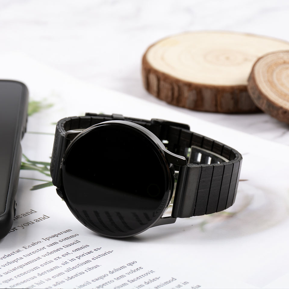 Montre intelligente multifonctionnelle en bois pour hommes avec bracelet Caractéristiques de l'alarme résistante à l'eau Compatible avec l'écran tactile Android IOS
