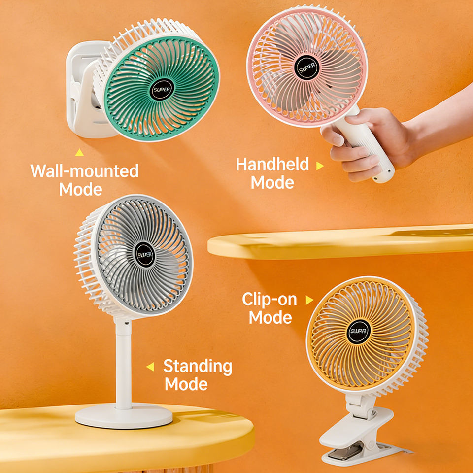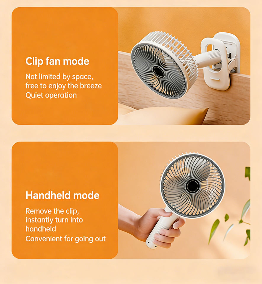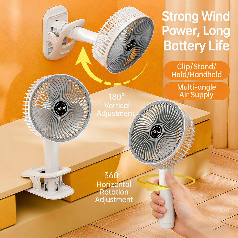 Ventilateur multifonctionnel à clipser, rechargeable par USB, portable, mural, pour dortoirs