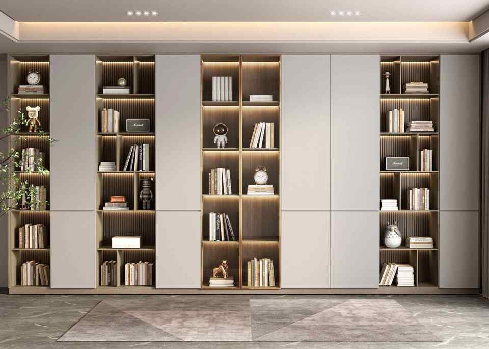 Bibliothèque à panneaux multicouches à haute teneur en fibres Mobilier de rangement de bureau au design moderne minimaliste Salon écologique