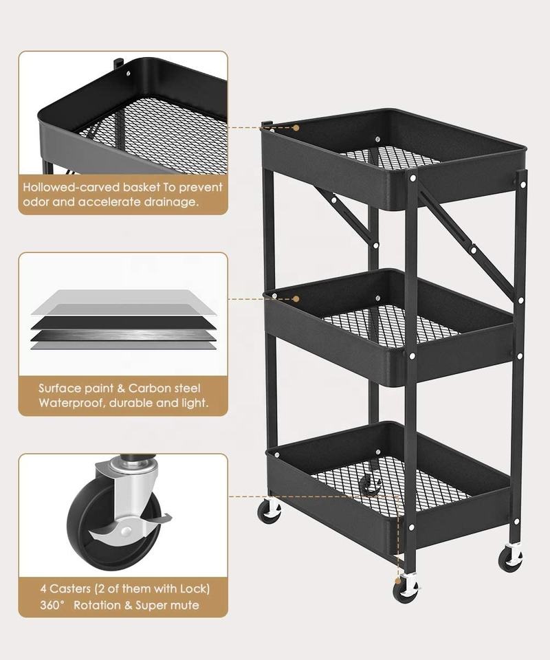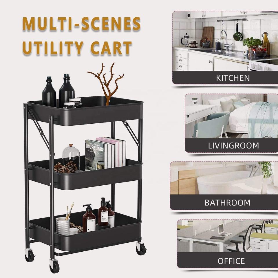 Chariot de rangement multicouche pour la maison et la cuisine Chariot pliant multifonctionnel Chariot à main roulant à 3 couches avec roues