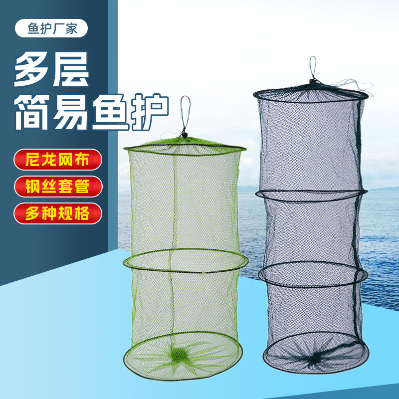 Filet de pêche multicouche simple, pliable et portable, pour poissons, crevettes, crabes, homards, 2, 3 ou 4 couches